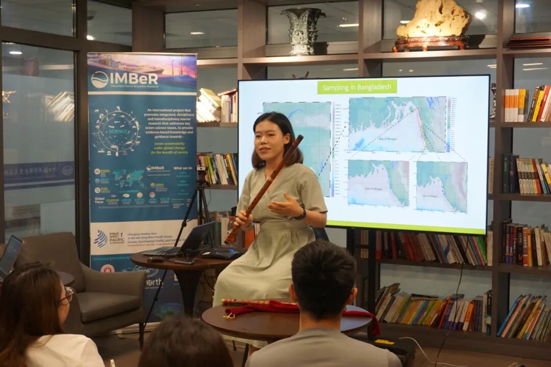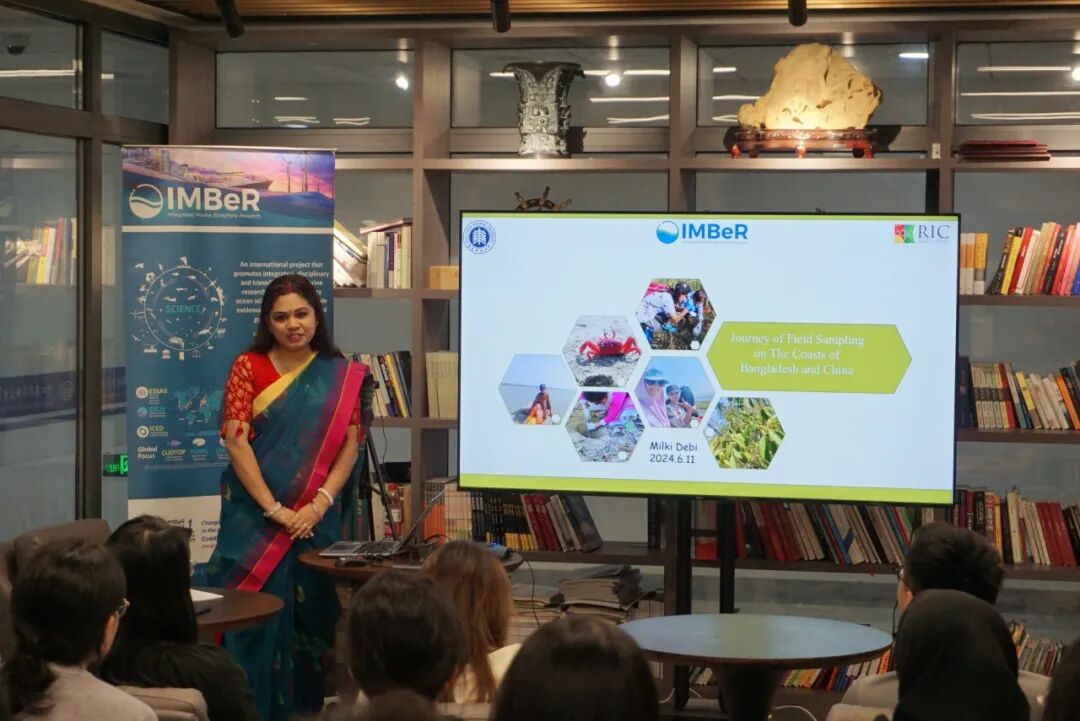 On June 11, the IMBeR International Project Office (IPO) conducted the seventh Coffee Reception capacity development event. The event featured vivid presentations by Wulantari, a master’s student in Marine Biology, and Milki Debi, a doctoral candidate in Marine Chemistry from the State Key Laboratory of Estuarine and Coastal Research, East China Normal University. They shared their extensive field scientific sampling in Indonesia, Bangladesh, and China, and cross-border shipment of scientific samples for further examination in Shanghai, China.